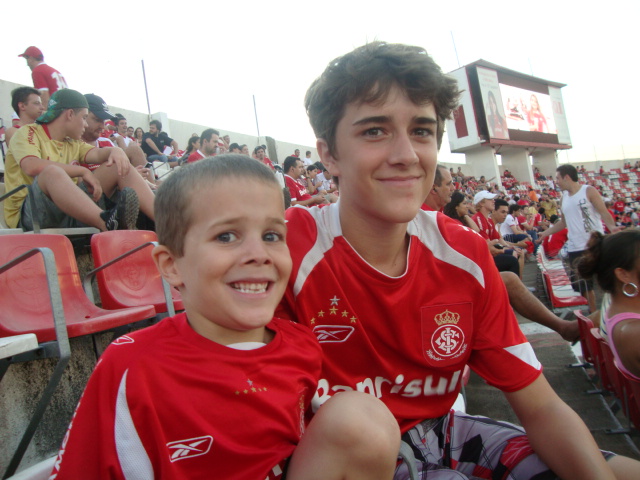 Our next game is against Jorge Wilstermann from Bolivia. Their goalie is Machado's brother, Mauro. Were you here when we met him last month and Garrett actually got to practice kicking falta's against him? Very cool for Garrett to get to play against a professional goalie. Anyway, when they play here we are going to take Machado. Even though he's a gremista and even though we've been beaten the two times I've taken him to Beira-Rio, we still are going to sit together to watch his brother. I told him we might even sit in the enemy territory to support Mauro. Should be fun.